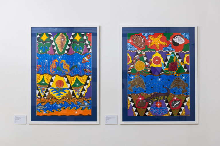 The term ‘Yana’ in the language of the Gurambilbarra Wulgurukaba people, who are the Traditional Owners of Townsville, means ‘walk’. Similarly, in Meriam Mer, the language of the Mer (Murray Island) people, ‘Gair le’ translates to ‘together’. Through this exhibition, Aboriginal and Torres Strait Island artists came together and walked as one.